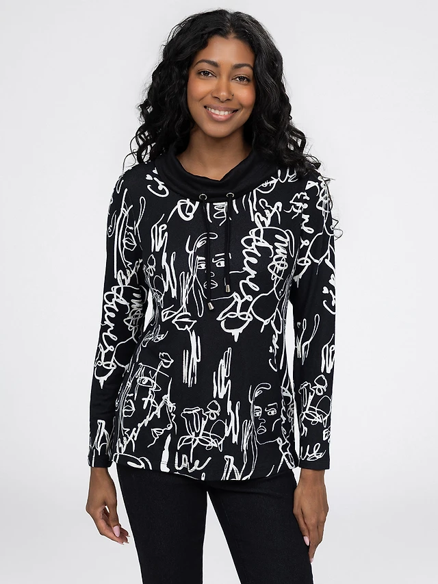 Blouse longueur tunique ample à manches 3/4 avec boutons