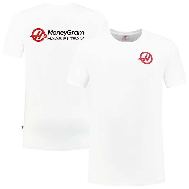 T-shirt blanc pour homme Haas F1 Team 2025 Fan Wear Roundel Essentials