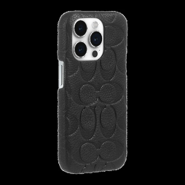 iPhone 15 Pro Coach Leather Slim Wrap Signature C Case - Black Emboss
