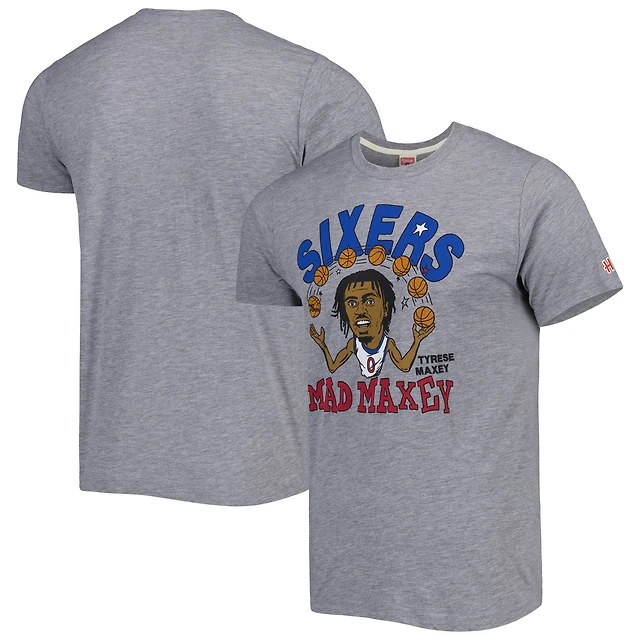 T-shirt triple mélange Caricature Philadelphia 76ers Hommage Tyrese Maxey gris pour homme
