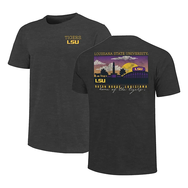 T-shirt pour homme, couleur anthracite chiné, motif campus des Tigers de LSU, taille grande et