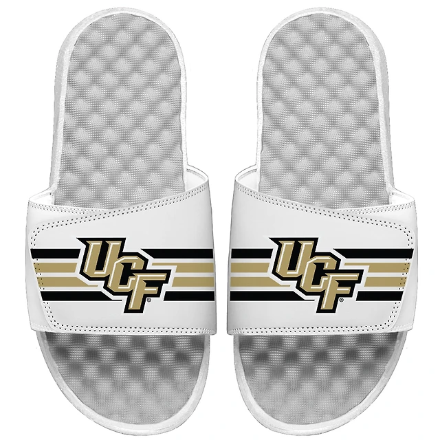 Sandales à enfiler ISlide blanches pour homme, motif Varsity Stripes des UCF Knights