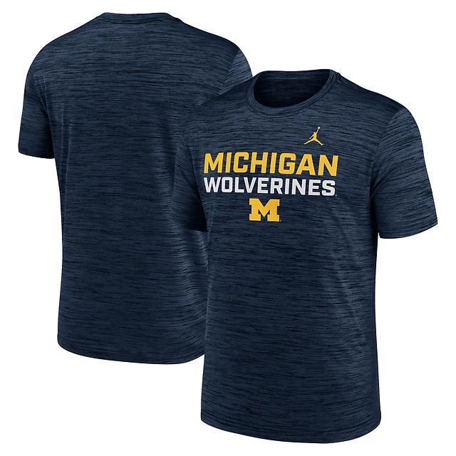 T-shirt Jordan Brand bleu marine Michigan Wolverines Campus Center Stack Velocity Performance pour homme