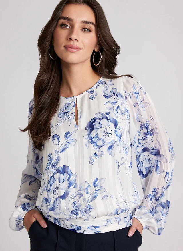 Blouse abstraite à taille froncée et pantalon Olivia à jambe large