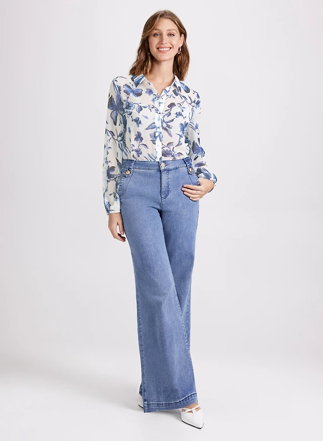 Veste en denim à rabat décoratif et pantalon Olivia à enfiler