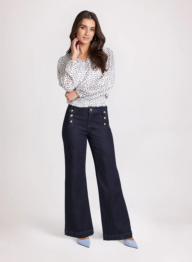 Jean à jambe large poches appliquées