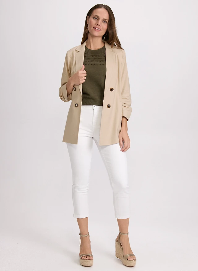 Blazer en mélange de lin et jean à jambe semi-évasée