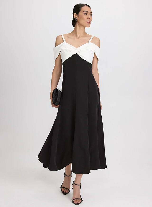 Robe épaules dénudées à bloc de couleur