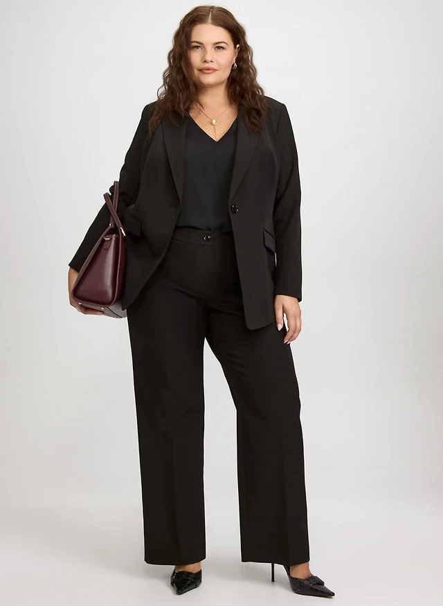 Blazer en sergé à bouton unique et pantalon Olivia à jambe large