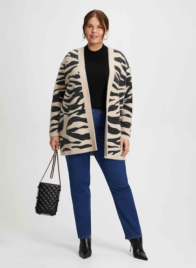 Cardigan zébré et jean bleu à enfiler