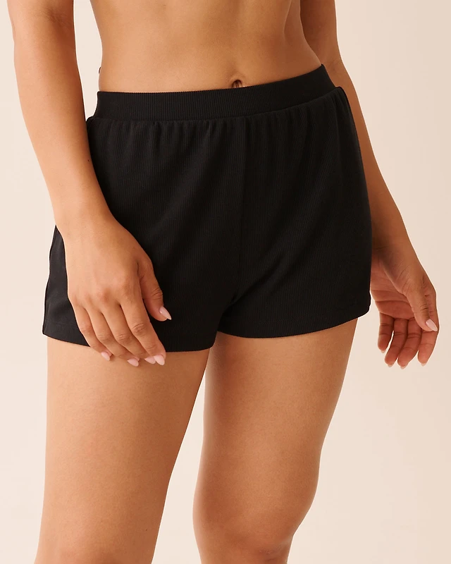 Combiné à soutien intégré en modal côtelé et bordure de dentelle