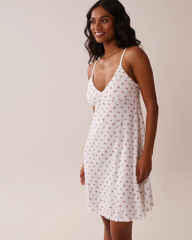 Camisole à fleurs violettes et bordure en dentelle fibres recyclées