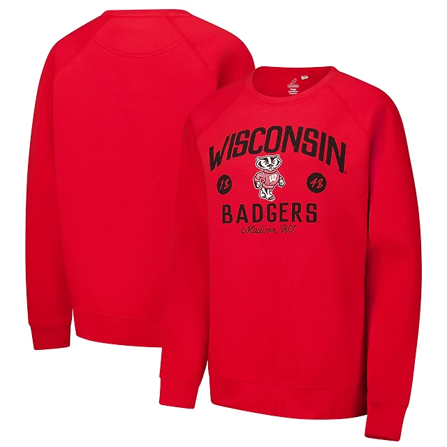 Sweat-shirt en bois à cordon pour femme League Collegiate Wear Crème Wisconsin Badgers Classic Campus