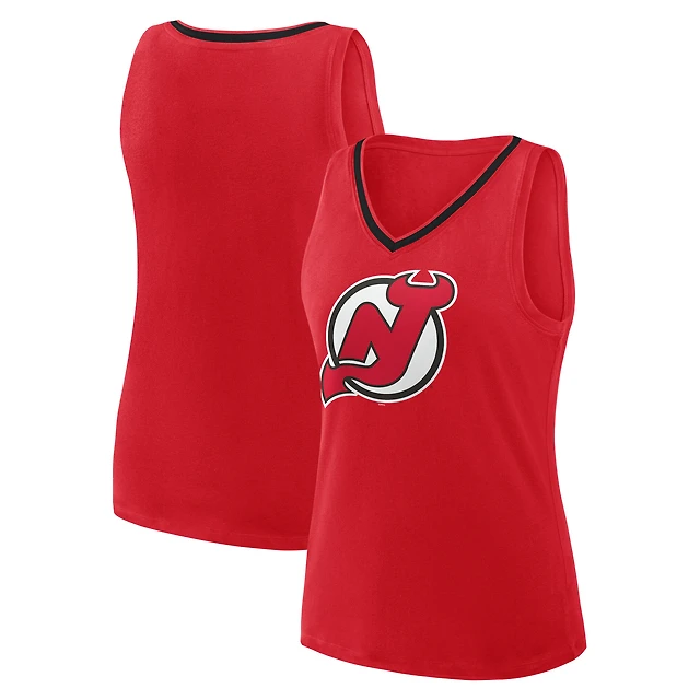 Débardeur à col en V avec logo athlétique rouge des Devils du New Jersey pour femme