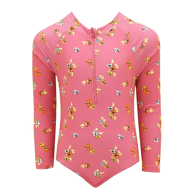 Maillot UV Manches Longues Côtelé Fleurs 2-14ans