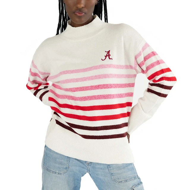Pull oversize à col montant et rayures Simone pour femme de Lusso White Alabama Crimson Tide