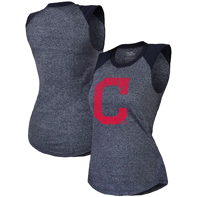 Majestic Threads - Débardeur raglan à trois mélanges bleu marine Cleveland Indians pour femme