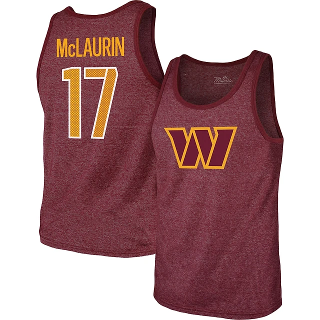 Débardeur Majestic Threads Terry McLaurin pour hommes, bordeaux chiné, nom et numéro du joueur des Washington Commanders