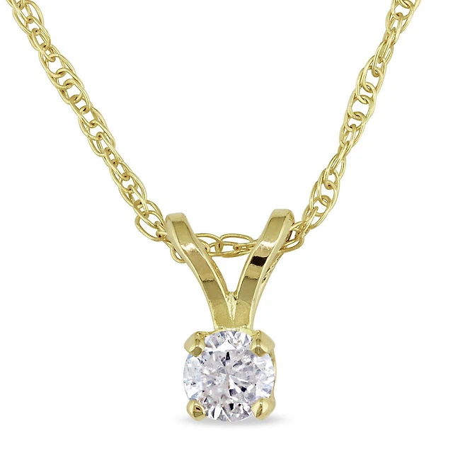 Pendentif Miabella avec 0.10 carat de diamant solitaire en or jaune 14k, 17 po