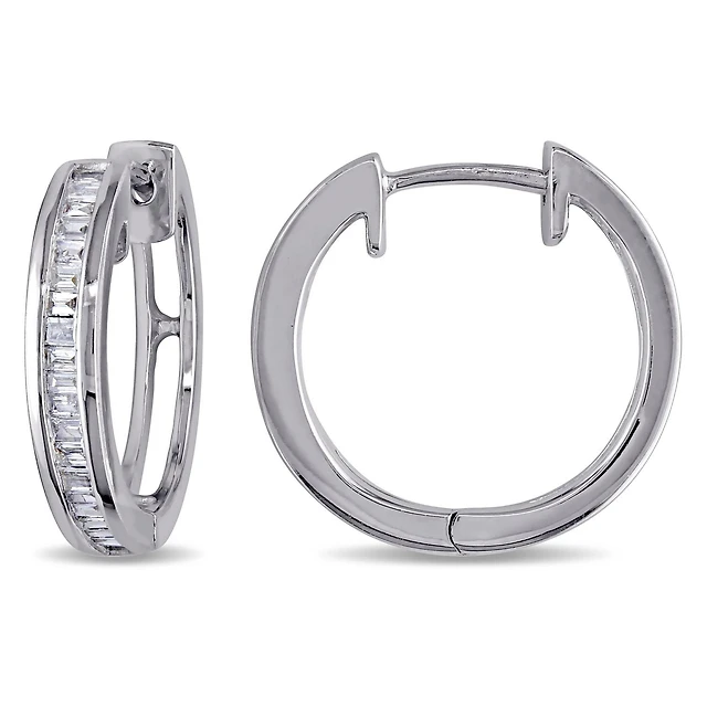 Boucles d'oreilles créoles de Miabella avec 1/4 carat poids total de diamants en argent sterling