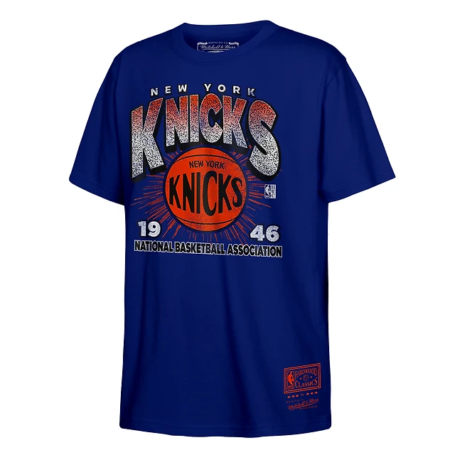 T-shirt bleu Mitchell & Ness New York Knicks Hardwood Classics Vintage Hoopster pour hommes