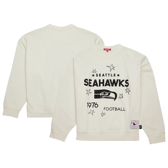 Sweat-shirt à capuche pour femme Mitchell & Ness Cream Seattle Seahawks Throwback Logo 3.0