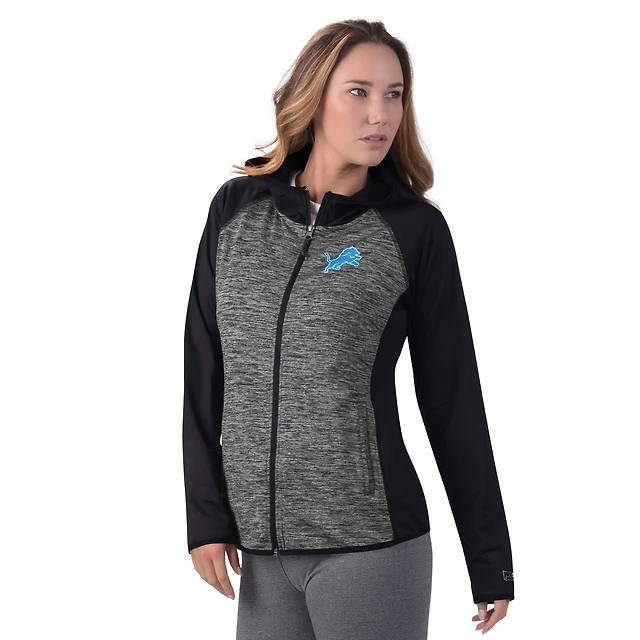 Veste zippée entièrement MSX by Michael Strahan pour femme Detroit Lions Leslie Space Dyed Raglan noire