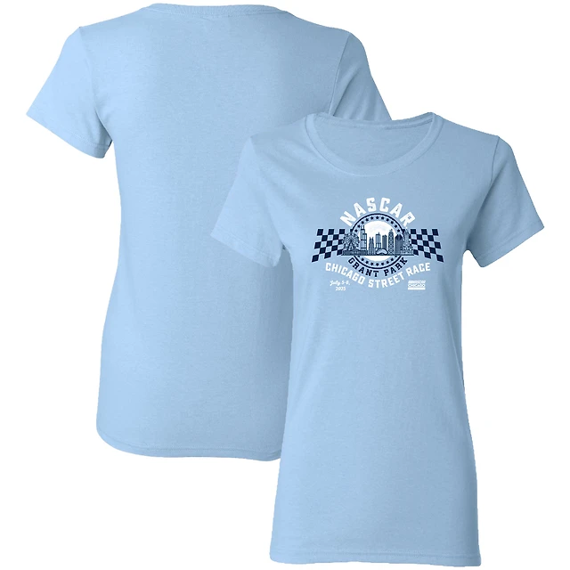 T-shirt bleu clair pour femme avec logo rétro NASCAR Chicago Street Race