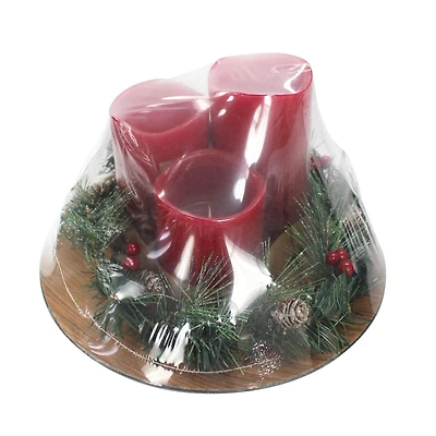 Paquet de 3 bougies piliers à DEL rouges entourées d'une couronne avec assiette