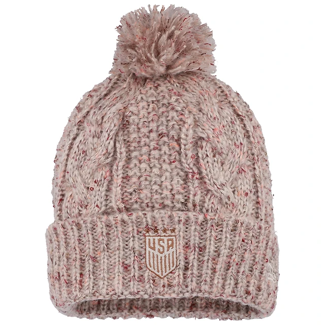 Bonnet tricoté à revers USWNT pour femme New Era Tan avec pompon