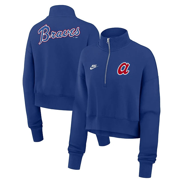 Sweat-shirt en molleton demi-zippé Nike Royal Atlanta Braves Cooperstown Collection Phoenix pour femme