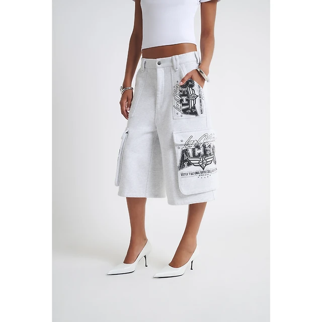 Short cargo en polaire New York Liberty gris chiné pour femme