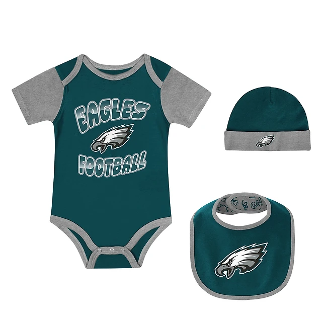 Ensemble body, bavoir et bonnet à revers pour nouveau-né Outerstuff Philadelphia Eagles Tag Team
