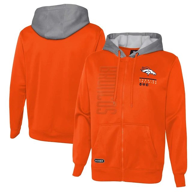 Sweat à capuche entièrement zippé orange Denver Broncos Combine Authentic Field Play pour hommes