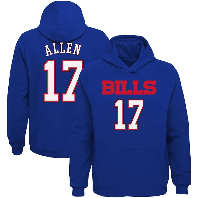 Sweat à capuche avec nom et numéro du joueur principal des Royal Buffalo Bills Josh Allen pour jeunes