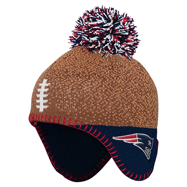 Bonnet tricoté marron pour bébé avec pompon et motif de football des New England Patriots