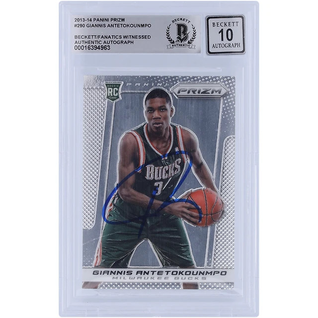 Carte de recrue autographiée Panini Prizm #290 2013-14 de Giannis Antetokounmpo des Milwaukee Bucks, Beckett Fanatics Witnessed Authenticated 10 Rookie