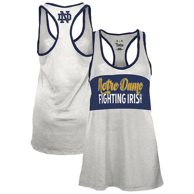 Débardeur dos nageur Tracy pour femme, blanc/bleu marine, imprimé Notre Dame Fighting Irish