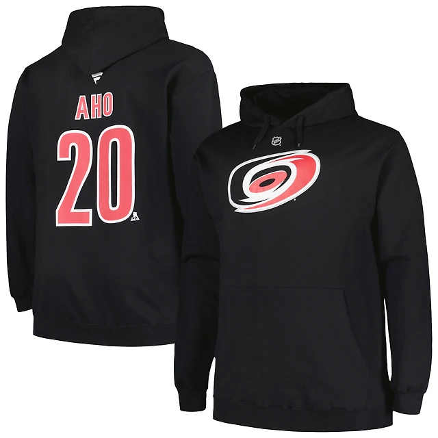 Profil pour hommes Sebastian Aho Black Carolina Hurricanes Big & Tall Nom et numéro Pull à capuche