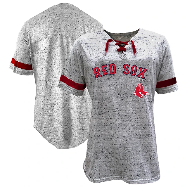 T-shirt moucheté à lacets gris chiné pour femme des Red Sox de Boston