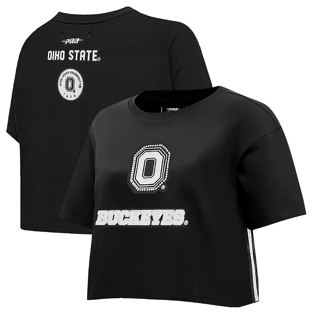 T-shirt court et carré Pro Standard noir Ohio State Buckeyes pour femme avec strass perles