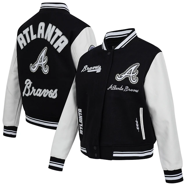 Veste universitaire entièrement zippée en laine côtelée Pro Standard noire pour femme des Atlanta Braves Pearls