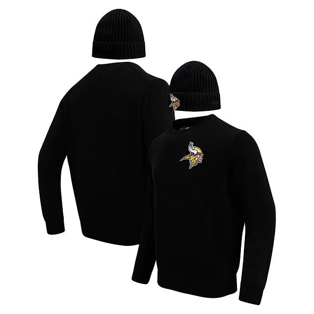 Pull à col rond et chapeau en tricot revers Pro Standard pour hommes, noir, Minnesota Vikings, coffret cadeau