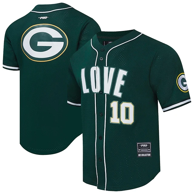 T-shirt de baseball boutonné en maille Pro Standard Jordan Love Green pour homme avec nom et numéro joueur des Packers Bay