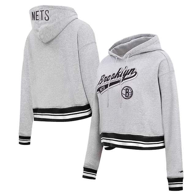 Sweat à capuche court Pro Standard pour femmes, gris chiné, Brooklyn Nets, Script Tail