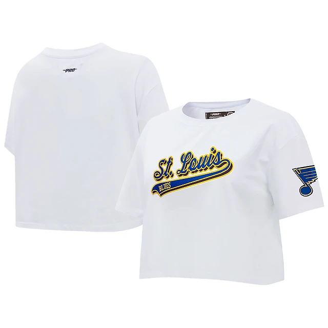 T-shirt court Pro Standard blanc St. Louis Blues Boxy Script Tail pour femmes