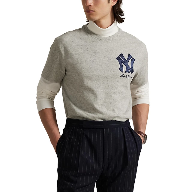 T-shirt Polo Ralph Lauren gris chiné en jersey des Yankees