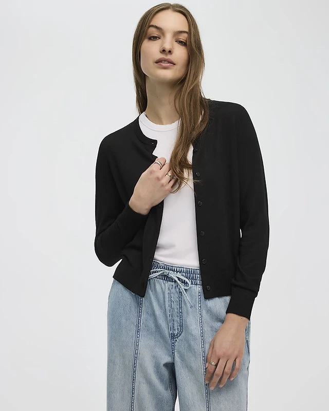 Cardigan boutonné en pointelle à col V et manches longues