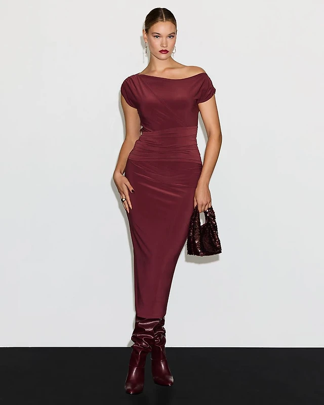 Robe midi à manches courtes avec détail croisé