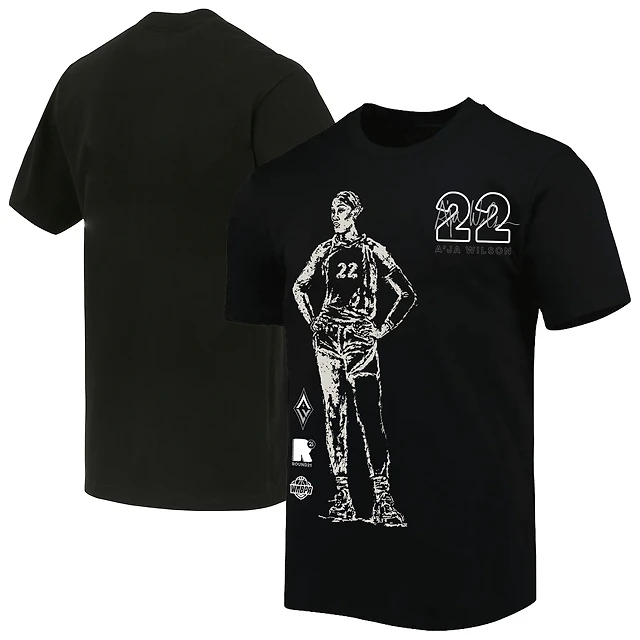 T-shirt unisexe round21 A'ja Wilson noir, joueur des Las Vegas Aces